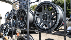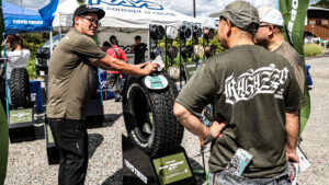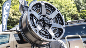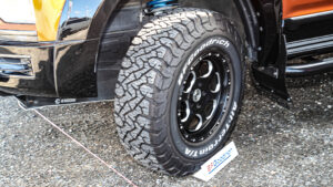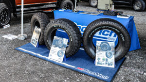 ホワイトレタータイヤの代名詞と言える、BFグッドリッチ。昨年から発売を開始したALL-TERRAIN T/A KO3を装着したデモカーに加え、ほかのモデルも展示。ユーザーの使い方に最適なタイヤをアドバイスしていた。(https://www.bfgoodrichtires.co.jp/)