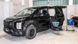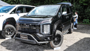 東京オートサロンの会場に展示されたブラックエディションアクティブシーカーと共に展示されたのは、発表したばかりの「超新型」デリカミニ。三菱ディーラー以外では初お披露目だったので、多くの来場者が細部まで念入りにチェックしていた。会場には初代デリカミニのユーザーも多く集まっており、既に予約した人もいるとのこと。