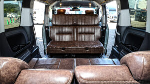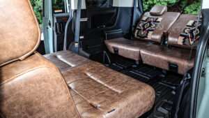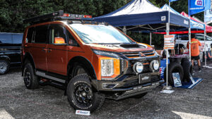 特徴的なデザインのフロントグリルやオーバーフェンダーを装着し、WARLOCKというサブネームが与えられるWeedのD:5。自社の塗装工場を構えており、純正で設定されていないボディカラーにも変更が可能。また後席への乗り降りが容易なハーティランをベースにしたカスタムモデル実施しており、すべての人が個性的なデリカを楽しめる。