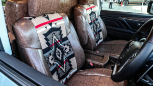 シートカバーだけでなく、機能的なセンターコンソールやインテリアの小物をラインナップするグレイス。最大の魅力は同じ生地を使用しているので、インテリア全体を、統一したコーティネイトできることだ。(https://grace-cts.com/)