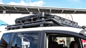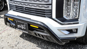 ランプだけでなく、リアラダーやルーフラック、インテリアストレージパネルなど、様々なパーツも展開中。ノーマルグリルに無加工で取り付けられるグリルマーカーが大ヒット中で、会場でも注目を集めていた。(https://www.ipf.co.jp/)