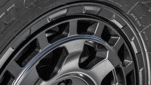 さらに注目なのが、外周をぐるりと囲む“ディフェンスリブ”。一段盛り上がったタフなリブ形状は、視覚的な武骨さを強めるだけでなく、ホイール全体の剛性感を底上げする役割も担う。ここに刻むシャープなラインは、工具で削り出したような雰囲気がある。