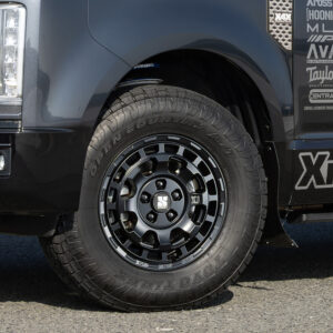 表面的な“ワイルド感”だけでなく、造形の奥にこだわりと意思が込めているのがよく分かる。剛性の塊のようなディッシュフェイスは平面ではなく、中心に向かってほどよく落ち込むコンケーブ造形。そこに等間隔で穿たれた〝レンコンホール〟は、古典的なオフロードホイールの文脈を受け継ぎつつ、モダンなバランスに再解釈したもの。丸みの中にエッジの効いた絶妙なカットラインとすることで、光の入り方で表情を変えるのも魅力だ。