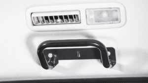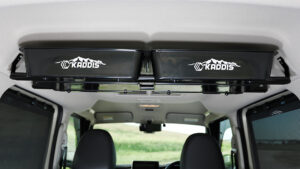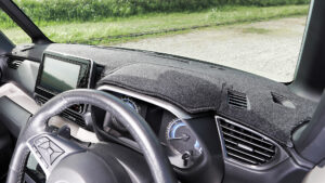 サードシート上部の空間を使ったルーフポケットとセカンド・サードシート用のアシストグリップを装着。アクセル、ブレーキ、フロア(ヒール用)の3点は滑り止め加工を施す。直射日光による温度上昇などを抑制する専用設計のダッシュマットも備わる。