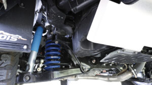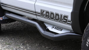 WalkerSupplys4インチアップキットに、KADDIS1インチアップコイルと減衰力調整付きセミハイストラットを組み合わせ、これに265/75R16サイズのタイヤを含めて、約5.2インチアップを実現している。