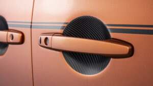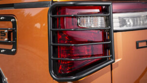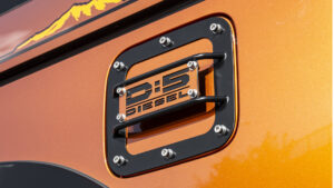 フューエルリッドとテールランプには、ラギッドデザインのフューエルリッドプロテクターブラックとテールランプガードを装着。どちらも耐久性に優れる粉体塗装が施され、フューエルリッドがステンレス、テールランプがスチール素材となる。ドアハンドルの内側はスタイリッシュなドアハンドルプロテクターブラックカーボンを装着。