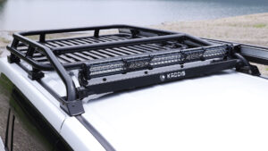 軽量かつ高剛性な45φのアルミパイプを使用したルーフキャリア。サイズは全長2050×全幅1260×全高180(mm)。オプションとしてフロントディフレクター、サイドオーニングブラケットもラインナップしている。