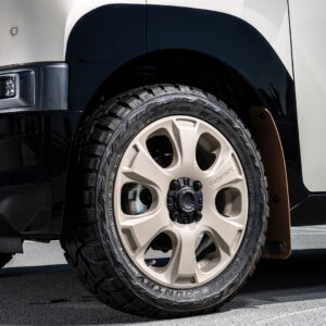 例えばスタイルM。オフロードをイメージし、ディスク中央に急激な落ち込みを生む出すことで山岳を表現。スタイルUは、洗練さを感じるフランジ部からセンターへ落とし込む8スポークで都会的な雰囲気でデザインされている。そしてデリカミニに装着したのがスタイルA。多彩なカラーが足もとを彩り、アクティブな印象を強調する。