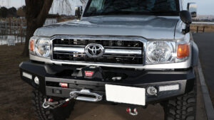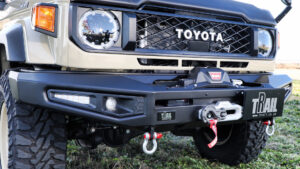 趣味性の高いランドクルーザーというモデルの中でも、70シリーズはワークホースとして使用されることも多い存在だ。ゆえにウインチ装着を求めるユーザーも多く、その声に応えるべくリリースされたのが、トレイルのフロントウインチバンパーである。