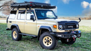 実用性を最優先に設計されたこのバンパーは、ウインチの操作をスムーズに行なえる構造をはじめ、脱着作業やメンテナンス時の扱いやすさにも配慮。堅牢なDシャックルを左右に標準装備し、実戦投入を想定した装備内容となっている。さらに、LEDフォグランプ、LEDウインカー&ポジションランプも標準装備。ウインチ非装着時に使用するアッパーカバーは、GDJ76用は標準装備、GRJ76用は別売りで用意される。材質は高強度スチール製。オフロード走行やオーバーランドといったタフなフィールドを想定した設計ながら、構造変更を必要としない法規制適合の合法バンパーとなっている点も大きな魅力だ。