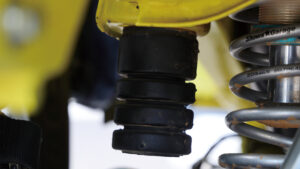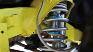 ラリー北海道に参戦したJB64が装着する足回りは、コンフォートコイル。車高変化はなく純正サスより乗り心地の向上を狙ったパーツだ。競技マシンといえば硬い乗り心地を想像するかもしれないが、このクルマは実に快適、まさにコンフォートな乗り味だ。ただしショックにはKINGショックを採用するほか、バンプ延長するなど、細部はハイスピードなラリーに向けたセッティングだ。