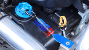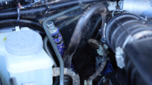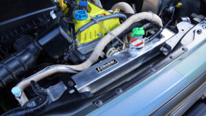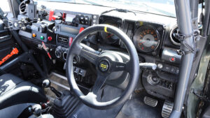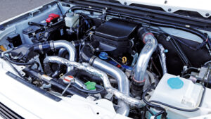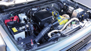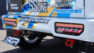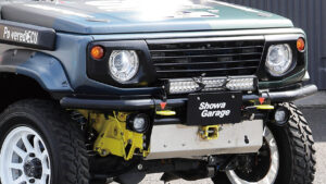 エンジンはターボパイプを圧力損失のないアルミ製に交換しているほか、コンピューターをショウワガレージのPowered ECU spec2でチューニング。なおこのマシンはウインチを使用しないためバッテリーを小型化して軽量化が図られていたのもポイント。この車両もオリジナルエンジンオイル『SR-ONE』を使用。マフラーはJB64用Linksマフラーを装備。