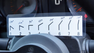 純正らしさを残すインテリアだが、助手席前にはラリーコンピューターを搭載し、ステアリング前にはコーナーの曲率がひと目でわかる一覧表を掲示。これを見つつナビの指示で操作していくという。