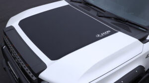テフロン加工を施されたブラックシートが、飛び石などによる傷から塗装面を保護すると共にドレスアップにも有効。