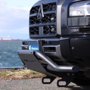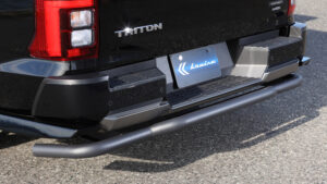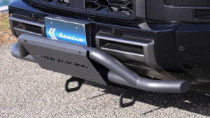 「アイアンガード(仮)」と名付けられたブランドのプロテクションパーツは、当たり前だがFRPにはない重厚な雰囲気が演出され、その無骨さはSUVに似合わないはずがない。今回のトライトンは前後のバンパーガードのみの装着となったが、今後はパイプフェンダーといったラインアップの強化が期待される。ちなみにフロントはノーマルバンパーに装着したが、リアはクールのボディキットと組み合わせている。そう、エアロとの同時装着も可能だ。