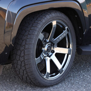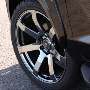KUHLの鍛造オリジナルホイールVERZ-RACING FORGED (ヴェルズレーシング・フォージド)VRF01Lの22×9.0J+18サイズ、ブラックメタルを装着。ボディ色とあえて変えることで、足元を際立たせる狙いがある。タイヤはRADAR RENEGADE A/T5(275/40R22)をコンビして、ローダウンとオフスタイルを融合。
