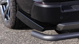 鉄もの仕様のパーツとして、アイテムガード(仮)と名付けられたバンパーガードを新採用。王道のフォルムに加え、中央に大きなスキッドプレートを配置してオフローダーらしさを強調する。さらに2つの大きな牽引フックを備えているが、こちらはショーカーを意識したもので、製品版では仕様が異なるだろう。ちなみに今回はローダウン仕様のトライトンに装着したが、リフトアップ仕様に合わせたスタイルも気になるところ。