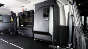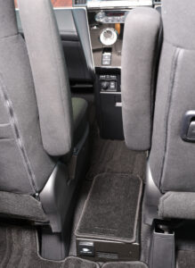 運転席と助手席に用意されているのが回転シートキット。D:BEDとの併用も可能で、別売りのユーティリティテーブルキットを装着すれば、より快適な室内となる。回転シートキットは運転席パワーシート用、運転席マニュアルシート用、助手席マニュアルシート用が用意されている。※回転シートキットの購入はMDFまたは三菱ディーラーでの装着となる。