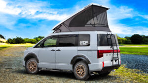 全国の厳選された三菱ディーラーからオーダー可能な、ビルトインルーフトップテントを備えたデリカD:5が、MDFエクイップメントがリリースするD:POP。デリカの特徴のひとつであるバックボーンフレームはそのままに、ルーフエンドにアクセスホールを備え、油圧ダンパーによる簡単な設営&撤収が可能なポップアップルーフテントを装備する。大人2名が快適に就寝できるスペースを確保し、テント生地は分厚く耐候性に優れたネオプレーン生地とメッシュ生地となる。それらをファスナーで開ければ完全解放となる。テントを閉じた状態の全高は1990㎜で、日常使いでの不便を感じることはない。また、新車保証や継続車検にも対応しているので安心なのも魅力だ。