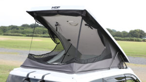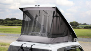 油圧式ダンパーを備え簡単に開閉が可能なポップアップ式ルーフテントを装備するD:POP。全国の厳選された三菱ディーラーからオーダー可能。