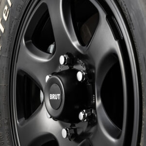 BRUT(ブルート)シリーズの最新作であるBR-70。重厚感たっぷりの雰囲気で、TANK(戦車)や大型輸送重機の大径ホイールをモチーフとしたデザインが特徴。車格を問わず装着しても重厚感が溢れる形状を細部にまでこだわって、幾度となくデザイン設計を繰り返した。その結果、力強い印象とありそうでなかったアイアンシェイプのホイールを完成させている。当初は16インチのみのラインナップだったが、17×7.5Jを追加したことでランドクルーザーにも装着が可能となった。