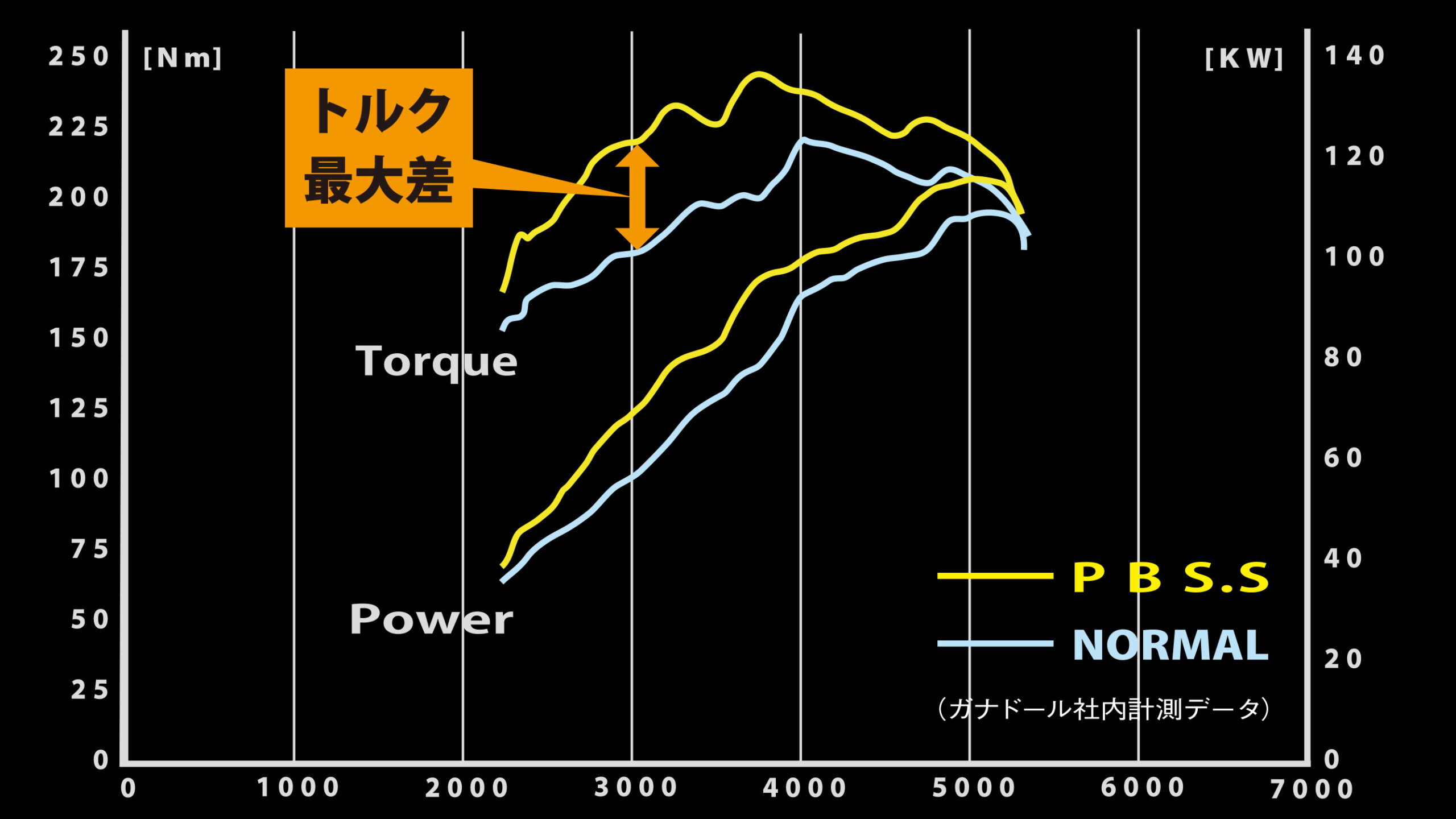 GANADORマフラー 25.0㎏f・m/3,760rpm(ノーマル比+2.4㎏f・m)