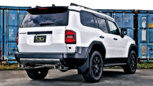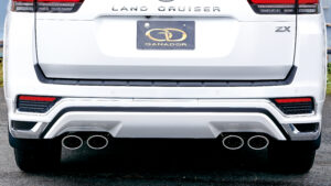 さらにモデリスタリアスカート対応マフラーも人気を博しており、今回撮影した左右4本出しオーバルテールのほか、左右4本出しスクエアテールや左ダブル出しオーバルテールなどを取り揃えている。ランクル300オーナーも要チェック!