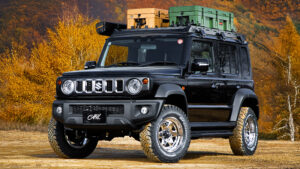 Superior Engineeringの2.0インチアップキットを装着したジムニーノマド。キット内容はダンパー、コイルスプリング、ドリームキャスター、延長ブレーキホース、それとオプションで前後のラテラルロッドを装備。価格は検討中だが、性能に対してリーズナブルなプライスとなる予定。