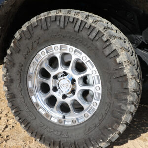 街中からオフロードまで、誰もが気楽に楽しめるカスタムを提案したいとのことで、タイヤ&ホイールは多くの種類が選べるようになっている。現状はBFGoodrichのAll-Terrain T/A KO3(225/75R16)に、BRUTのBR-44。このホイールはジムニーシエラ&ジムニーノマド専用サイズ(6.5J×16±0)で、Cool Glitterというニューカラーを装着。ブラックカラーは鉄チン風のネオレトロデザインとなるが、クロームポリッシュのCool Glitterは、ネオレトロにアメリカンテイストを追加したようなイメージ。オンもオフもマッチするジムニーノマドとなっている。