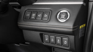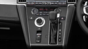 ディスプレイ下にはATシフトレバーやエアコン操作スイッチ、電動パーキングブレーキなどを配置。その中でも目を引くのが、前述のドライブモード切り替えダイヤルと、直下にレイアウトされたヒルディセントコントロールのスイッチである。これらが並ぶボードは、従来のピアノブラックからダークグレーへ変更。高級感はあるものの傷や指紋が目立ちやすいというユーザーの声を反映した、実用性重視のアップデートだ。ボード下にはUSB Type‐C×2、DC12Vソケット、HDMIポートを備え、後席用にもフロアコンソールにUSB Type‐Cを追加している。