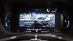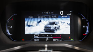 マルチアラウンドモニターは4つのカメラで車両の前後左右を映し出し、真上から見下ろすような視点で死角を確認できる心強い装備だ。狭い道や駐車場でも安心感が高まり、アウトドアシーンでも頼れる存在となる。