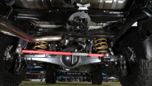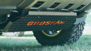 FOXと共同開発したダンパーやサイドラダー、MKWの専売カラーホイールに1.5インチアップスプリングなど、GOOSFAMのオリジナルアイテムを続々とリリース。