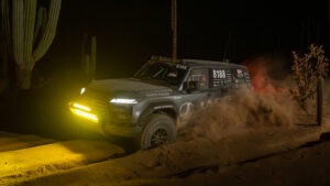 それにともない、3年間で熟成されたマシンであるLEXUS LX600からハイブリッドのLEXUS GX550hに切り替えての参戦となった。過酷で知られれるオフロードレースBAJA1000マシンとしては稀有なハイブリッド車両の選択は、まさに誰も知らない未知の領域に踏み込むチャレンジだった。