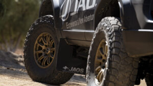 2024年までの3年間の経験を活かして選ばれたタイヤサイズは37インチ。BAJA1000=乾いた路面の印象があるが、実は雨が降るとかなりマッディになるため、それを想定してタイヤはTOYOTIRESのオープンカントリーR/Tトレイルを装着する。ショックは今回のマシン用に改めて新開発されたKYBのスペシャル仕様に変更されているほか、プロジェクトμのブレーキやトヨタ紡織のスペシャルシートなどでモディファイされている。