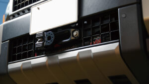 純正のバンパーに収まるWARNウィンチは狭いクリアランスに収めるよう上下を逆にし、なおかつストックの雰囲気を崩さずにレイアウト。