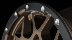 カラーは、「ダークブロンズ/E-proCoat」と「セミグロスアームズグレー/E-proCoat」の2色で、リムとフェイスのカラーを塗り分けるツートンとした。配色に使われたE-proCoatは、切削部のみに通電させて着色する塗装工法で、ツートンカラーをきっちり塗り分ける際に最適なアプローチ。異なる2色を組み合わせたことで、ビードロックリング(テイスト)の別体感をさらに高めているのもポイントだ。1ピース構造とは思えない立体感に溢れるメッシュデザイン、ディテールに徹底的にこだわったリアルビードロックリングテイストなど特徴的なアピアランスを持つM8×Bエディションは、デリカの足もとをさらにアグレッシブに仕立ててくれる。