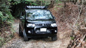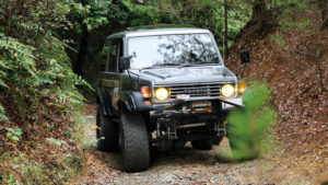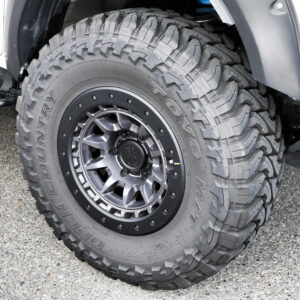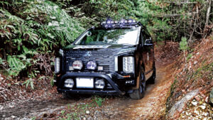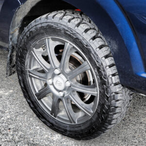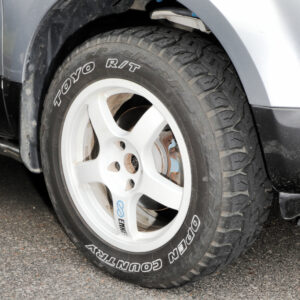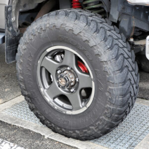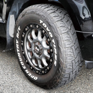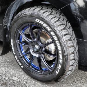 195R16サイズのオプカンのMT-Rを履くユウキさん。「サイズ重視で決めたタイヤですが、オフロードはもちろん、高速の長距離移動も問題ありません」