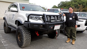 約1月前にランクルBASEのイベントでSAFをノーマルタイヤで走り、昨日AT3の履き替えて再びSAFへ。「やっぱり安心感が全然違いますね」。