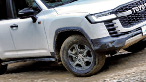 235/65R17サイズのR/Tを履き、本格的なオフロード走行は初めてだったというぐっさん。「楽しかったですね!オンもオフもしっかりした安心感があります」