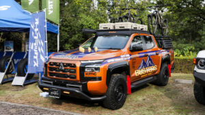 オートフラッグスは近藤代表自らがフェリーと運転して持ち込んだオーバーランドスタイルにカスタムしたトライトンを展示。さらにトークショーも行ない、来場者を沸かせていた。