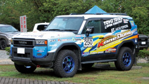 自社でラリーチームを持ち、全日本ラリーやWRCにも参戦しているK-oneのFJ、クルーザーも展示。オートサロンにも展示されたデモカーだ。