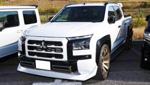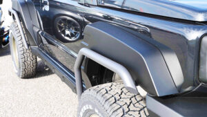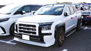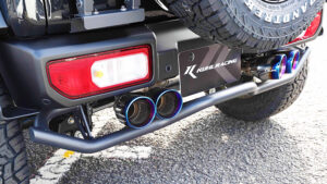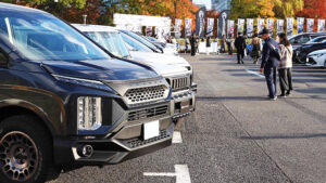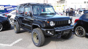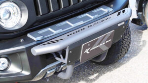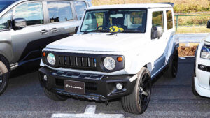 KUHLカスタムを施した、およそ100台の車両が集結!その中にはデモカーも含まれており、そこにはアイアンガードを追加したジムニーノマドの姿も。本サイトでもブロッカースタイルを紹介したが、早くも仕様変更を遂げている。これまでFRPパーツを展開してきたKUHLだが、FRPと金属を融合させたスタイルを今後は提案する予定だ。