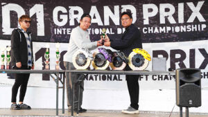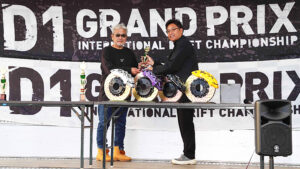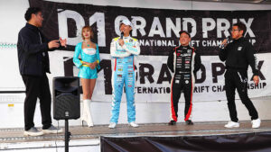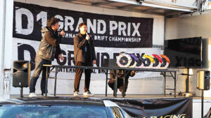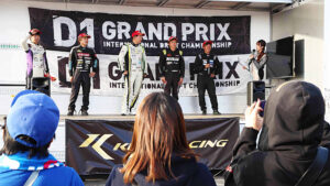 午前の予選、夕方から始まる決勝の間に開催されたトークショー。KUHLのエアロを装着したGRスープラで参戦する山中真生選手や多田康治選手と共に、実況の鈴木さんも登壇。D1の魅力や見どころ、そして2026年のシーズンに向けての抱負を語ってくれた。もちろんKUHLは2026年もスポンサードを続け、クルマの「走る」魅力をもっと伝えたいと片岡代表は語っていた。