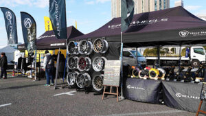KUHLブースの注目アイテムは、この日発表された6ポットのブレーキシステム。ドレスアップだけでなく安全性も重視する。またダンロップやAir-force、さらにジャイロを組み込み簡単にドリフト走行が楽しめるラジコンメーカーのRevedも出展。体験コースも用意されていたので、大人から子供まで全員が楽しんでいた。