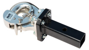 牽引時、より高い安全性と信頼性を望むなら、従来のヒッチボールよりもピントルフックがお勧めだ。ヒッチボールはレシーバーヒッチにボール状のジョイントを装着し、連結側に半球円状のカバーを被せて連結する。対してピントルフックはワニ口状のフックを開き、ここにルネットアイを連結し、ロックアームを閉じて、ピンやクリップで固定する。これは大型トレーラーなどで主流の連結方法となる。牽引能力2tのE-405、牽引能力8tのE-1000などをリリースしている。