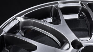 センターキャップをダークトーンにすることでアルミプレスによる質感を大切に仕上げ、塗装後にHOMURAの文字を刻むことで素材を活かした独特のデザインを完成させている。