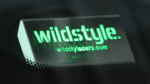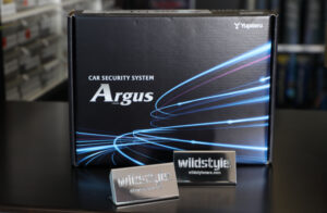 セキュリティシステムを装着していることをアピールするサインプレートは、車両盗難や車上荒しに対する有効な抑止力になるとのこと。ワイルドスタイルでは、オリジナルのサインプレートやイルミ付きスイッチなどをリリースしている。また、ワイルドスタイルには電気に強いスタッフが揃っているため、セキュリティシステムのインストールのほか、オーディオカスタムも得意としている。