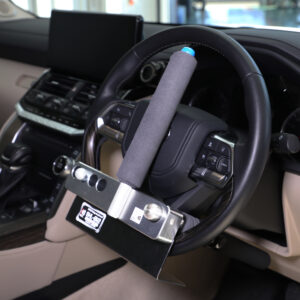装着方法は非常に簡単。ハンドルに挟んでキーロックするだけ。ただし約5kgと、かなりの重さがあるため、片手での装着は難しい。しかしその重さも、高い防犯性を示す特長。茨城県警も推奨するアイテムだ。