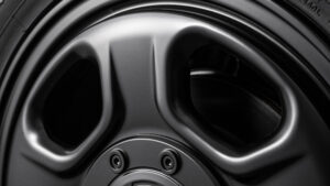 このモデルは5つの窓を持つディッシュディスクの正統派で、この5ウインドーの周辺にも窓を際立たせる立体的な造形が加えられており、さらにセンターにはボルト留めされたようなカバータイプのキャップを組み合わせたほか、リムとディスクの交差部へあえて隙間を作りマルチピース風のシルエットを演出するなど、そのディテールによって、ディスクに抑揚を与えている。