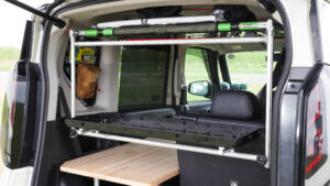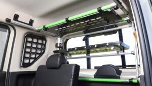 他にも1850×535㎜のサイズを確保したシングルベッドキットや、リアハッチ下を有効活用できるバックドアパイプなども発売中。車内を整理整頓できるだけでなく、オーナーの創意工夫でアウトドアや車中泊の快適性も向上できるという、オーナーであるからこそ分かる実用性アイテムを多くラインナップしているので要チェックだ。